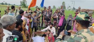 বাংলাদেশী স্বজনরা শেষবারের মতো সীমান্তে ভারতীয় নাগরিক জব্বার মন্ডলের লাশ দেখল