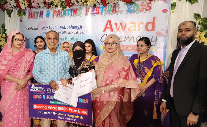 নোয়াখালীর জেলা শহর মাইজদির একটি কনভেনশন হলে আলোহা বাংলাদেশ এর দ্বিতীয় বর্ষপূর্তি উপলক্ষ্যে ম্যাথ Each পেইন্টিং ফেস্টিভাল ২০২৫ অনুষ্এঠিত হয়েছে। পুরষ্কার বিতরণ অনুষ্ঠানে প্রধান অতিথি হিসেবে উপস্থিত ছিলেন জেলা শিক্ষা অফিসার নুর উদ্দিন মোঃ জাহাঙ্গীর, বিশেষ অতিথি হিসেবে উপস্থিত ছিলেন মোশারেফ গ্রামার স্কুল এর প্রধান শিক্ষক রোকসানা মাসুদ, প্রভাতী শিশু শিক্ষার প্রধান শিক্ষক লায়লা তারেক।