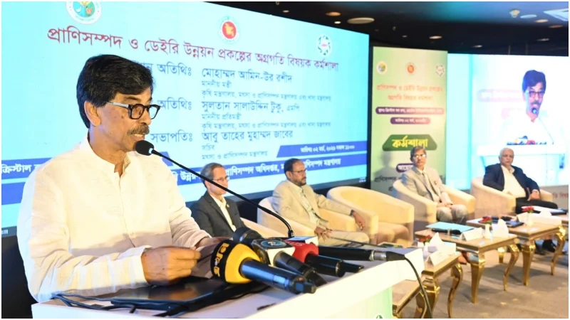 সোমবার রাজধানীর Hotel InterContinental Dhaka–এ প্রাণিসম্পদ ও ডেইরি উন্নয়ন প্রকল্পের অগ্রগতি বিষয়ক এক কর্মশালায় প্রধান অতিথির বক্তব্যে তিনি এসব কথা বলেন।