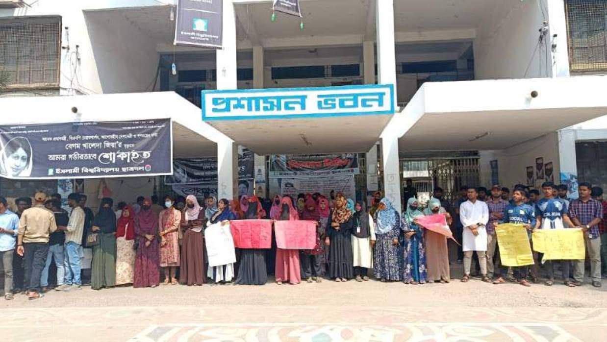ফরিদপুরের ইসলামী বিশ্ববিদ্যালয়ে (ইবি) সমাজকল্যাণ বিভাগের সহকারী অধ্যাপক আসমা সাদিয়া রুনার গলা কেটে হত্যার ঘটনায় বিশ্ববিদ্যালয় ক্যাম্পাসে উত্তেজনা বিরাজ করছে। নিহত শিক্ষকের প্রতি সম্মান জানাতে এবং হত্যাকারীর ফাঁসিসহ বিচার দাবি জানাতে বৃহস্পতিবার সকাল ১০টার দিকে প্রশাসন ভবনের সামনে বিক্ষোভ শুরু করেন শিক্ষার্থীরা।