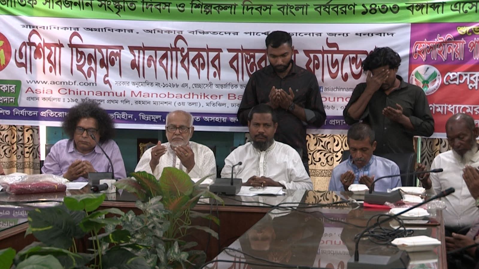 এম জি বাবর। ব্যাপক আয়োজনে ২ বৈশাখ ১৫ এপ্রিল বুধবার সকালে রাজধানীর শিশু কল্যাণ পরিষদে আলোচনা সভা ও গুনীজন সম্মাননা প্রদান করেন এশিয়া ছিন্নমূল মানবাধিকার বাস্তবায়ন ফাউন্ডেশন । সংগঠনের চেয়ারম্যান মোঃ দুলাল মিয়ার সভাপতিত্বে উক্ত অনুষ্ঠানে প্রধান অতিথি হিসেবে উপস্থিত হয়ে সাংবাদিকদের সুখ দুঃখ লাগবে সহযোগী হিসেবে প্রেসক্লাব ইউনিটি আত্মপ্রকাশ করেন। তথ্যবাংলা ফাউন্ডেশন,, ওয়ার্ল্ড মিডিয়া ক্লাব, ও এশিয়া ছিন্নমূল মানবাধিকার বাস্তবায়ন ফাউন্ডেশন এর চেয়ারম্যান মোঃ দুলাল মিয়া আহবায়ক, দৈনিক নবজীবন পত্রিকা সম্পাদক নূরুন্নাহার সদস্য সচিব, সম্মিলিত সাংবাদিক সোসাইটি সভাপতি মোঃ দেলোয়ার হোসেন ভূঁইয়া কার্যকরী সদস্য মনোনীত হন। কেন্দ্রিয় কার্যকরী পরিষদ ২৫ সদস্য বিভিন্ন পদে, জেলা উপজেলা সমন্বয়ক দ্বারা কেন্দ্রিয় কমিটি ১২৫ জন ও ৭ সদস্য উপদেষ্টা পরিষদ এর নাম ঘোষণা করা হয়। পুলিশ অফিসার জেলা পর্যায়ে ২ জন, সমাজ সেবক ২ জন ও অন্যান্য ধারায় মোট ২৮ গুনীজনকে মানবাধিকার সম্মাননা প্রদান করা হয়। হোসাইনিয়া পাক দরবার শরীফ তত্বাবধানে শান্তি ও সমৃদ্ধি কামনায় দেশ জাতীর কল্যাণে মিলাদ ও বিশেষ দোয়া করেন মুফতি ফেরদাউস খান। সকলের মঙ্গল কামনায় বৈশাখী বর্যবরন আনন্দ আয়োজন করা হয়।