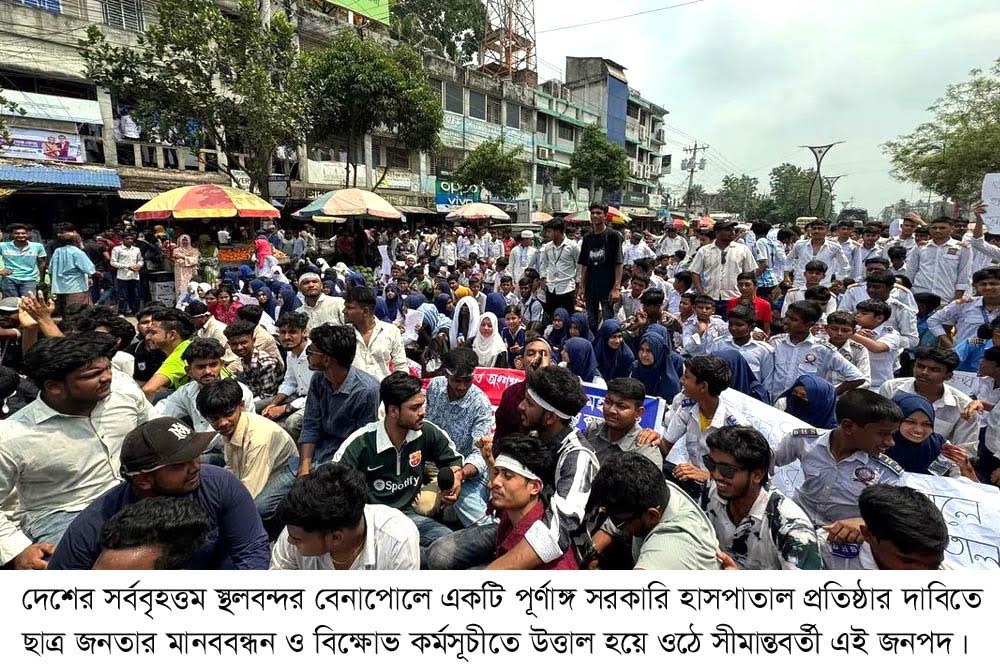 মানববন্ধনে অংশ নেওয়া এক শিক্ষার্থী বলেন, “আমরা আধুনিক বেনাপোল চাই, যেখানে মানুষের জীবন রক্ষার ন্যূনতম ব্যবস্থা থাকবে। একটি হাসপাতাল আমাদের মৌলিক অধিকার।”